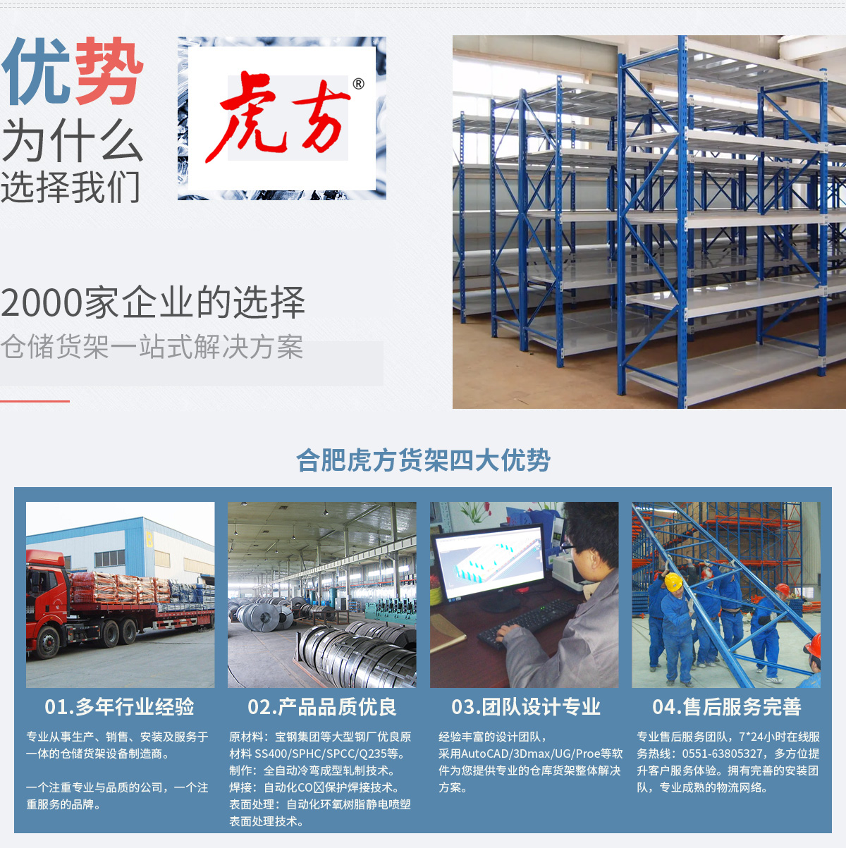 - 合肥虎方貨架有限公司從事經營倉儲貨架、物流周轉及搬運設備、倉庫管理系統等相關產品的生產、銷售、設計、安裝及采購集成服務。 公司主要產品:貨位式貨架、倉儲重型貨架、擱板式貨架、閣樓式貨架、駛入式貨架、鋼平臺貨架、穿梭式...
